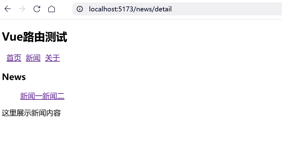 <RouterLink :to="{ path: '/news/detail', query: { id: '123'} }">新闻二</RouterLink>这将生成类似以下的 URL: