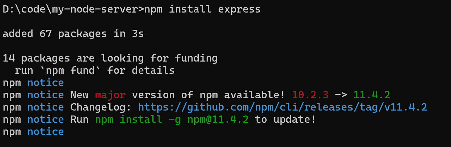 第一步需要选择一个web应用框架,需要明确的是Node.js是一个运行时环境,JavaScript是编程语言,通常为了方便开发,我们需要选择一个web框架,比较成熟的web框架有Express、koa、NestJs,以下使用express创建一个服务端应用